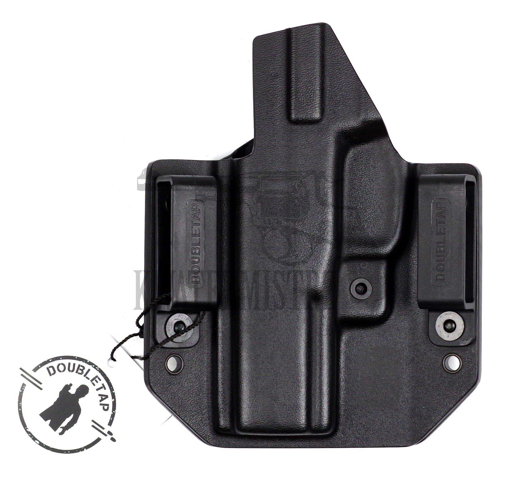 Kabury Doubletap tworzone są na frezowanej formie stałej, co zapewnia idealną powtarzalność produktu oraz wysoką precyzję wykonania. Te cechy pozwalają uzyskać perfekcyjną retencję (zacisk kabury wokół pistoletu), która jest w prosty sposób regulowana za pomocą dedykowanych śrub. Kabłąk pistoletu jest w pełni zakryty a pistolet utrzymywany w kaburze z siłą docisku dobraną precyzyjnie pod preferencję strzelca. Kabury Doubletap tworzone są ze zrozumieniem ludzkiej anatomii- głębokość wycięcia pod palce dłoni strzelającej jest dobrana w taki sposób, aby móc złapać pistolet wygodnie i pewnie.