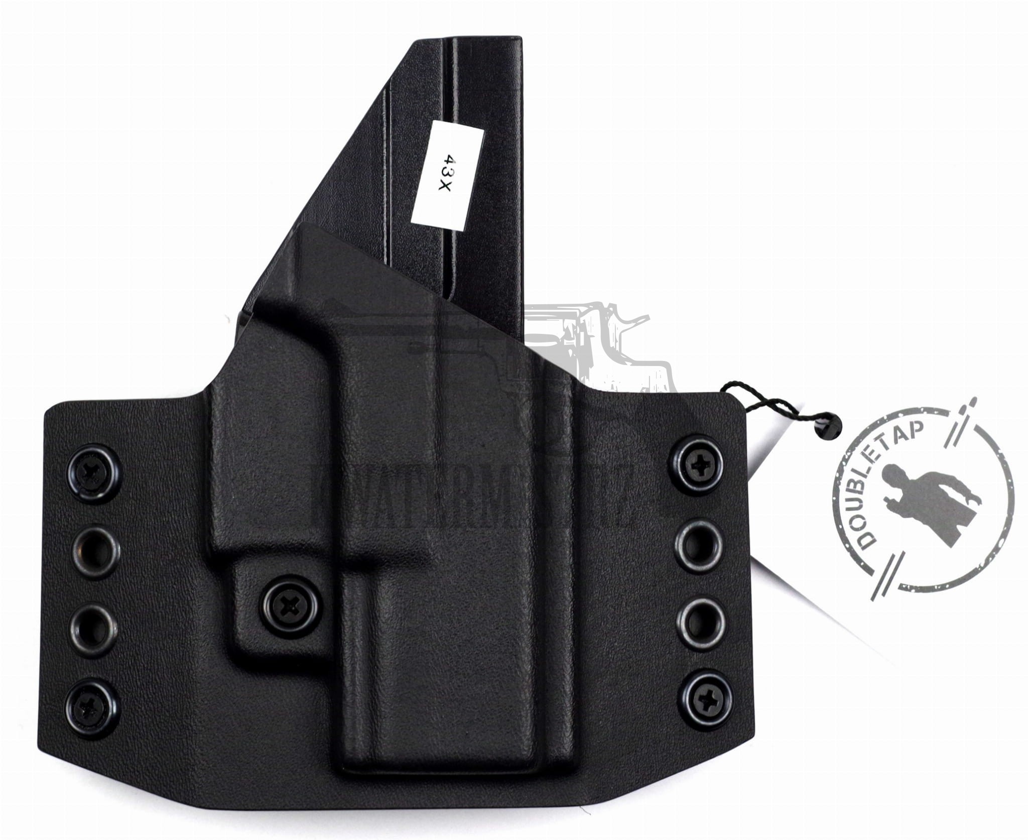 Kabury Doubletap tworzone są na frezowanej formie stałej, co zapewnia idealną powtarzalność produktu oraz wysoką precyzję wykonania. Te cechy pozwalają uzyskać perfekcyjną retencję (zacisk kabury wokół pistoletu), która jest w prosty sposób regulowana za pomocą dedykowanych śrub. Kabłąk pistoletu jest w pełni zakryty a pistolet utrzymywany w kaburze z siłą docisku dobraną precyzyjnie pod preferencję strzelca. Kabury Doubletap tworzone są ze zrozumieniem ludzkiej anatomii- głębokość wycięcia pod palce dłoni strzelającej jest dobrana w taki sposób, aby móc złapać pistolet wygodnie i pewnie.
