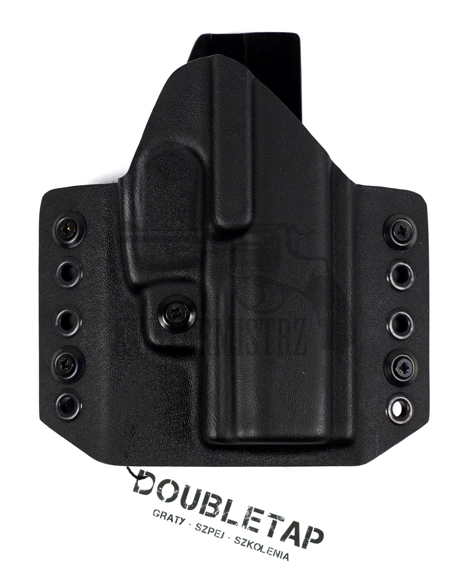 Kabury Doubletap tworzone są na frezowanej formie stałej, co zapewnia idealną powtarzalność produktu oraz wysoką precyzję wykonania. Te cechy pozwalają uzyskać perfekcyjną retencję (zacisk kabury wokół pistoletu), która jest w prosty sposób regulowana za pomocą dedykowanych śrub. Kabłąk pistoletu jest w pełni zakryty a pistolet utrzymywany w kaburze z siłą docisku dobraną precyzyjnie pod preferencję strzelca. Kabury Doubletap tworzone są ze zrozumieniem ludzkiej anatomii- głębokość wycięcia pod palce dłoni strzelającej jest dobrana w taki sposób, aby móc złapać pistolet wygodnie i pewnie.