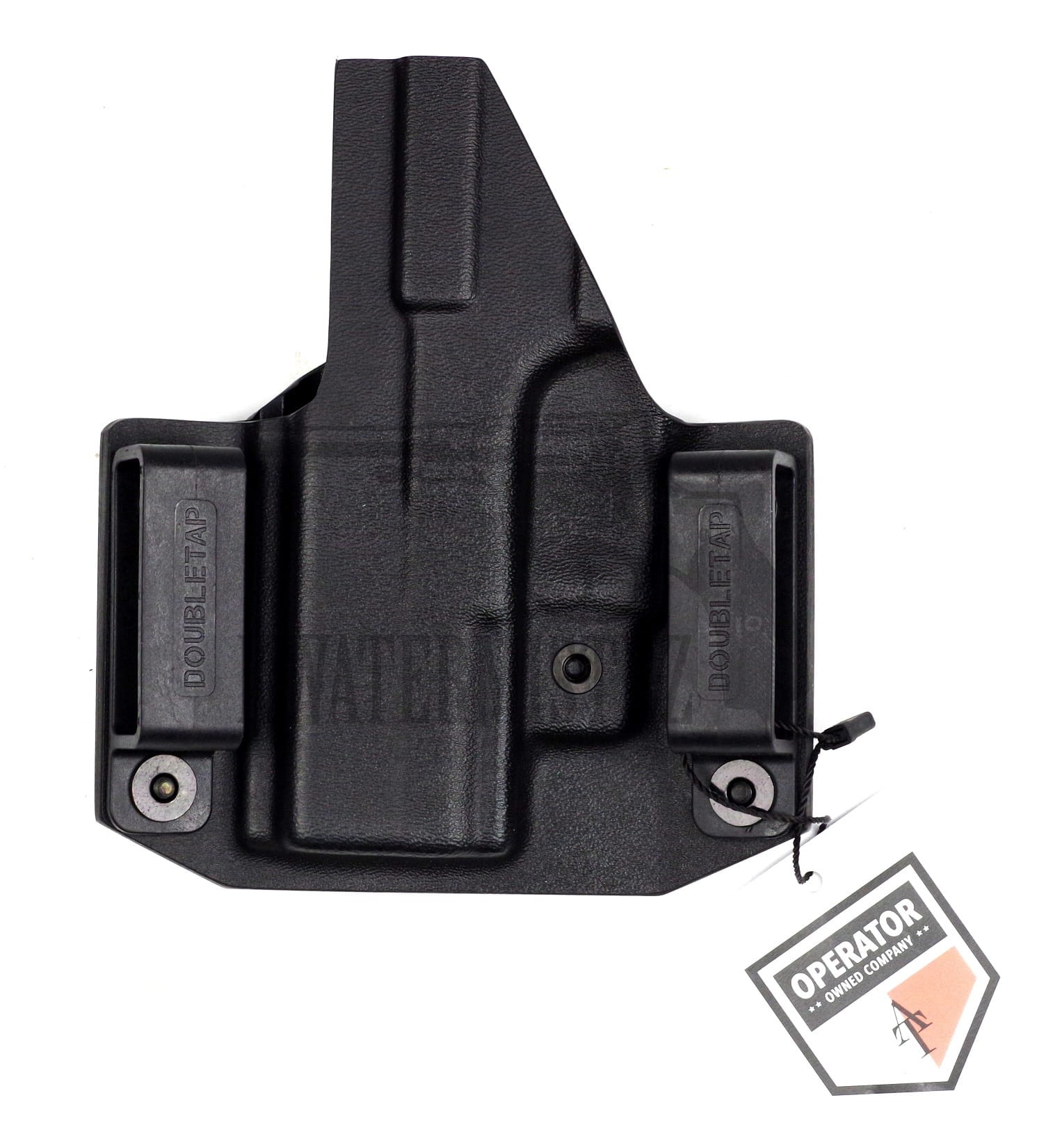 Kabury Doubletap tworzone są na frezowanej formie stałej, co zapewnia idealną powtarzalność produktu oraz wysoką precyzję wykonania. Te cechy pozwalają uzyskać perfekcyjną retencję (zacisk kabury wokół pistoletu), która jest w prosty sposób regulowana za pomocą dedykowanych śrub. Kabłąk pistoletu jest w pełni zakryty a pistolet utrzymywany w kaburze z siłą docisku dobraną precyzyjnie pod preferencję strzelca. Kabury Doubletap tworzone są ze zrozumieniem ludzkiej anatomii- głębokość wycięcia pod palce dłoni strzelającej jest dobrana w taki sposób, aby móc złapać pistolet wygodnie i pewnie.
