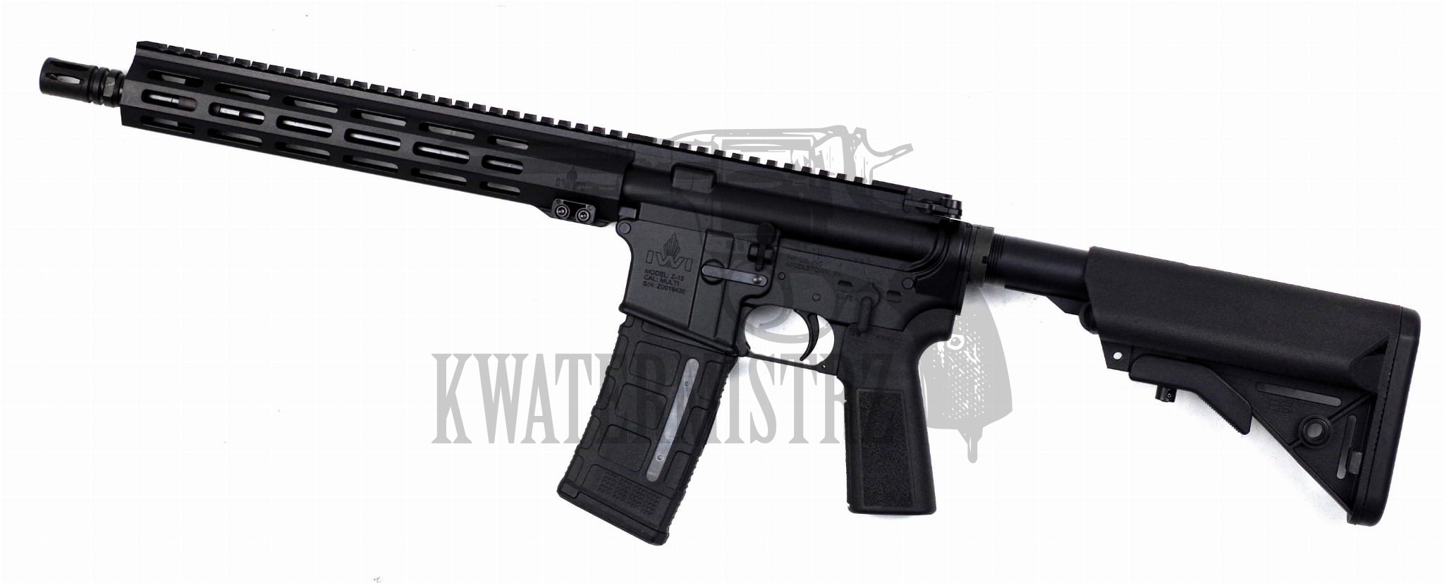 Karabinek IWI ZION Z-15- wysokiej jakości karabinek typu AR-15 w standardzie mil-spec od uznanego, izraelskiego producenta Industries Weapon Israel. Broń w całości wyprodukowana została w amerykańskiej manufakturze IWI mieszczącej się w Middletown w Pensylwanii. Z-15 to model cieszący się bardzo dużą popularnością przede wszystkim z uwagi na bezkompromisową jakość wykonania. Karabinek wyposażony w grubościenną lufę ze skokiem gwintu 1:8, która jest celna i świetnie radzi sobie z odprowadzaniem ciepła. Umiejscowienie bloku gazowego MID-Length przekłada się na wysoką kulturę pracy broni. Aluminiowe łoże, to łoże typu "free float" M-LOK. Pogrubienie ścianki w tylnej części komory mechanizmu spustowego ma na celu zwiększenia wytrzymałości konstrukcji mocowania tulei układu powrotnego. Wysokiej jakości chwyt wyprodukowany przez firmę B5 Systems charakteryzuje się prostym kątem i agresywną teksturą. Regulowana kolba z dwoma schowkami, również od producenta B5 Systems, jest szeroka dzięki czemu można wygodnie złożyć się do strzału. Dodatkowo karabinek wyposażony jest w amortyzator usuwający luzy między komorą spustową a komorą suwadła. Karabinek jest bronią bojową, zaprojektowaną tak, aby wszystko działało sprawnie i niezawodnie. Mimo jego wojskowych korzeni świetnie sprawdzi się również w sporcie strzeleckim.