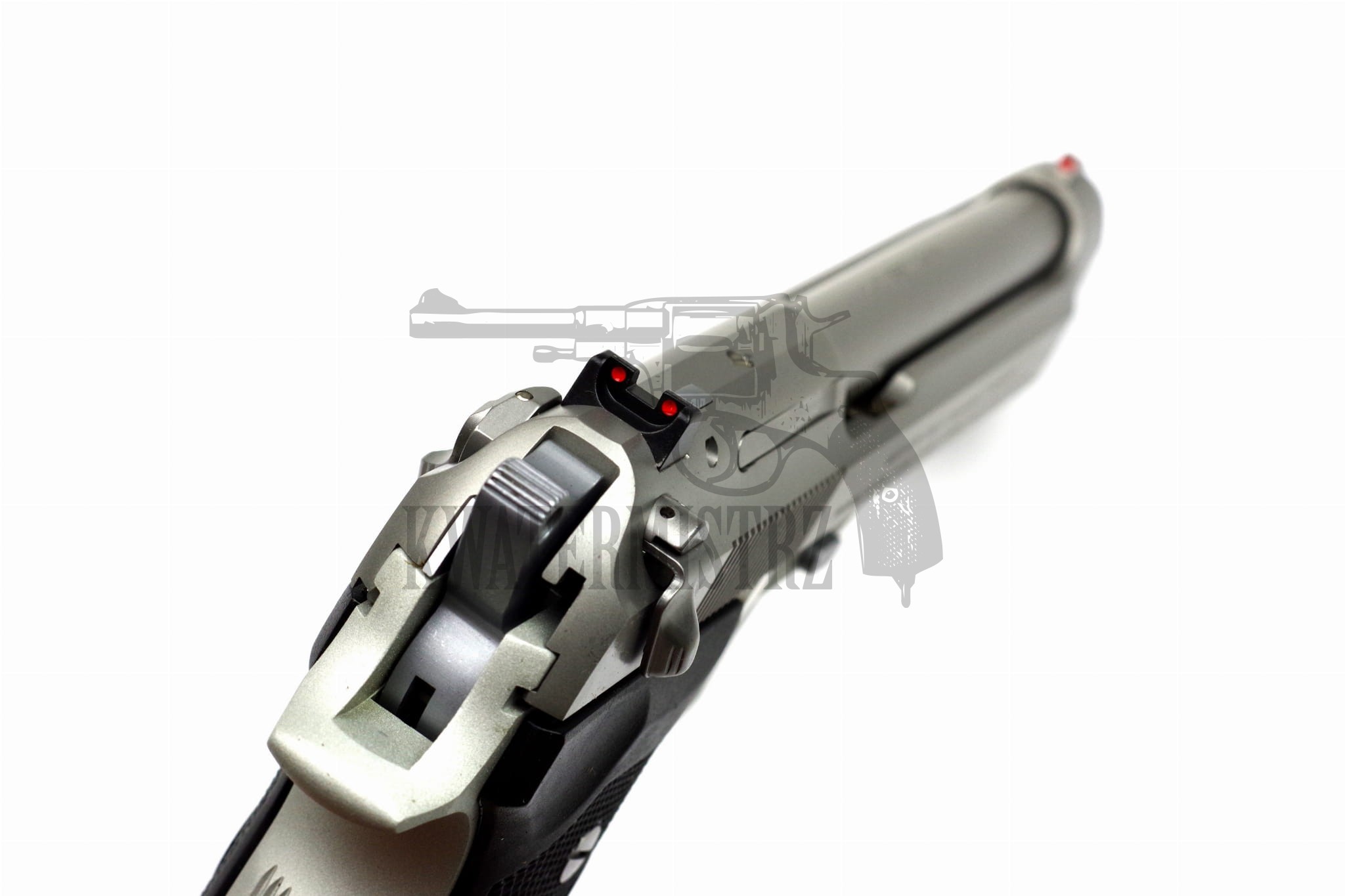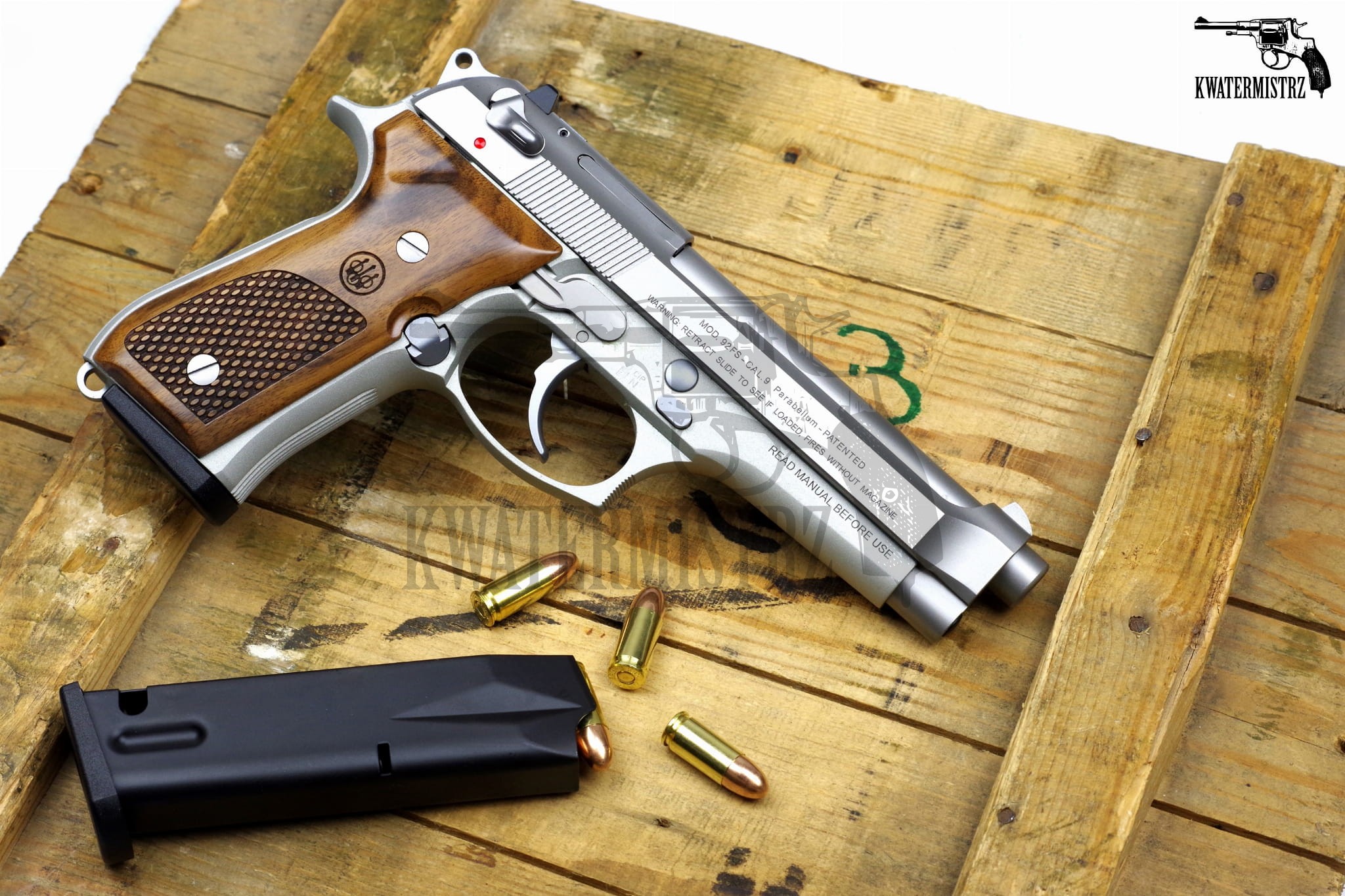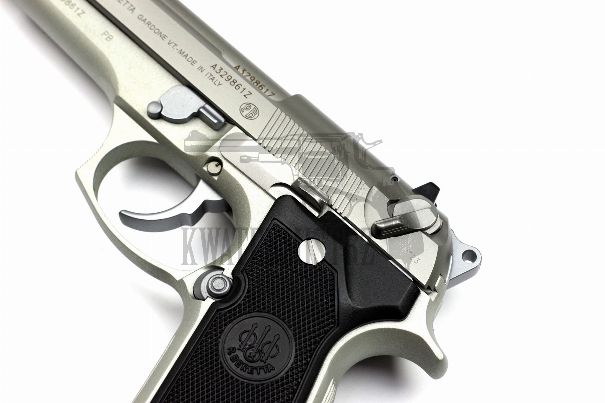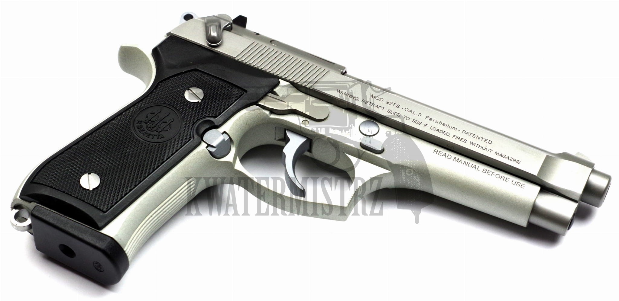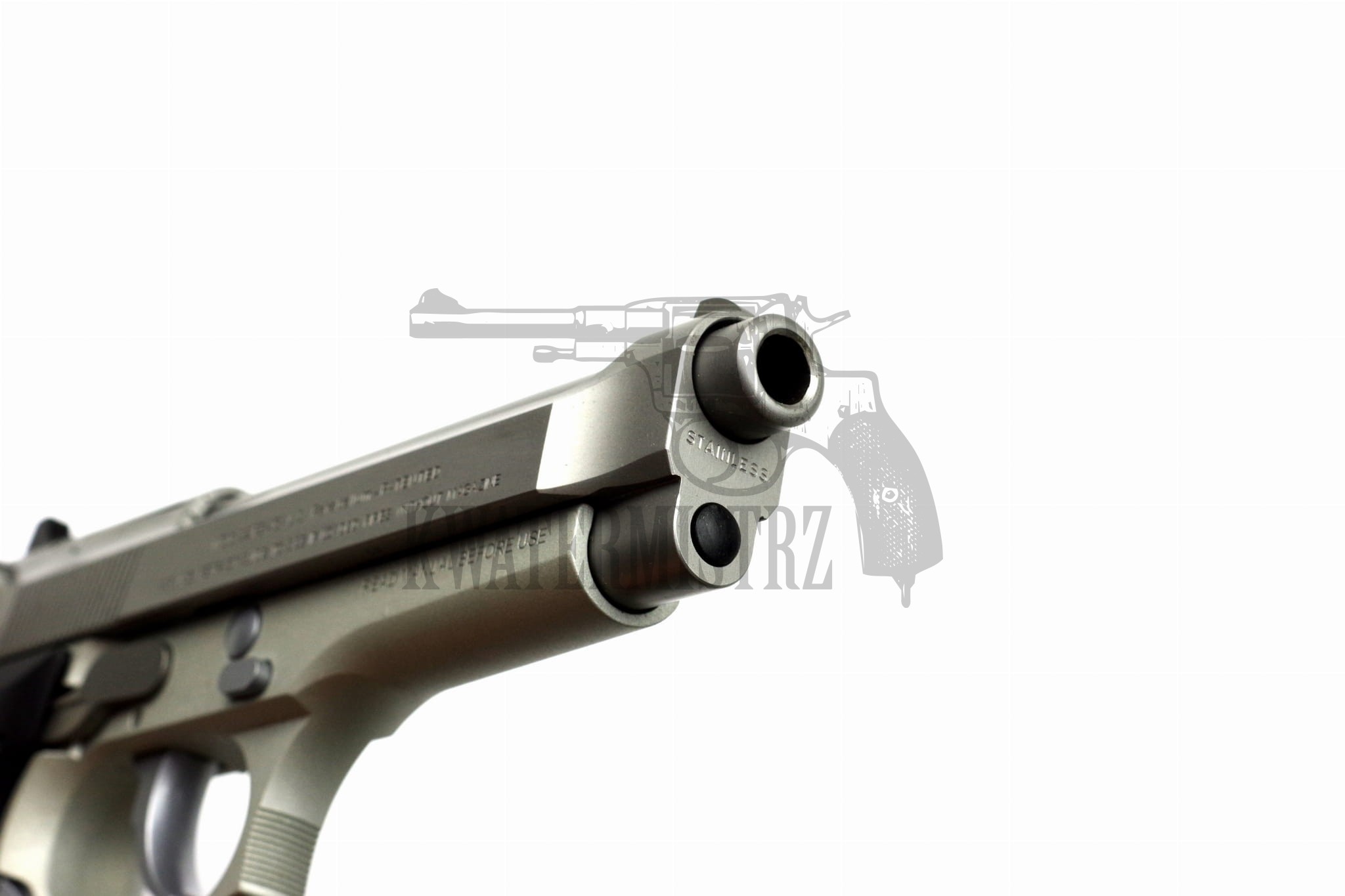 Pistolet Beretta 92FS INOX (ITALY)- absolutna klasyka krótkiej broni palnej od uznanego, włoskiego producenta broni BERETTA. Broń produkowana jest w różnych wariantach od 1976 r. do chwili obecnej. Pistolet używany na całym świecie i ceniony przede wszystkim za bezkompromisową jakość wykonania oraz niezawodność. Model FS to jedna z najpopularniejszych wersji pistoletu będąca modernizacją wersji F- broń wyposażona została w zmodyfikowaną oś kurka i prowadnice zamka. Wersja INOX wykonana została z matowej stali nierdzewnej.