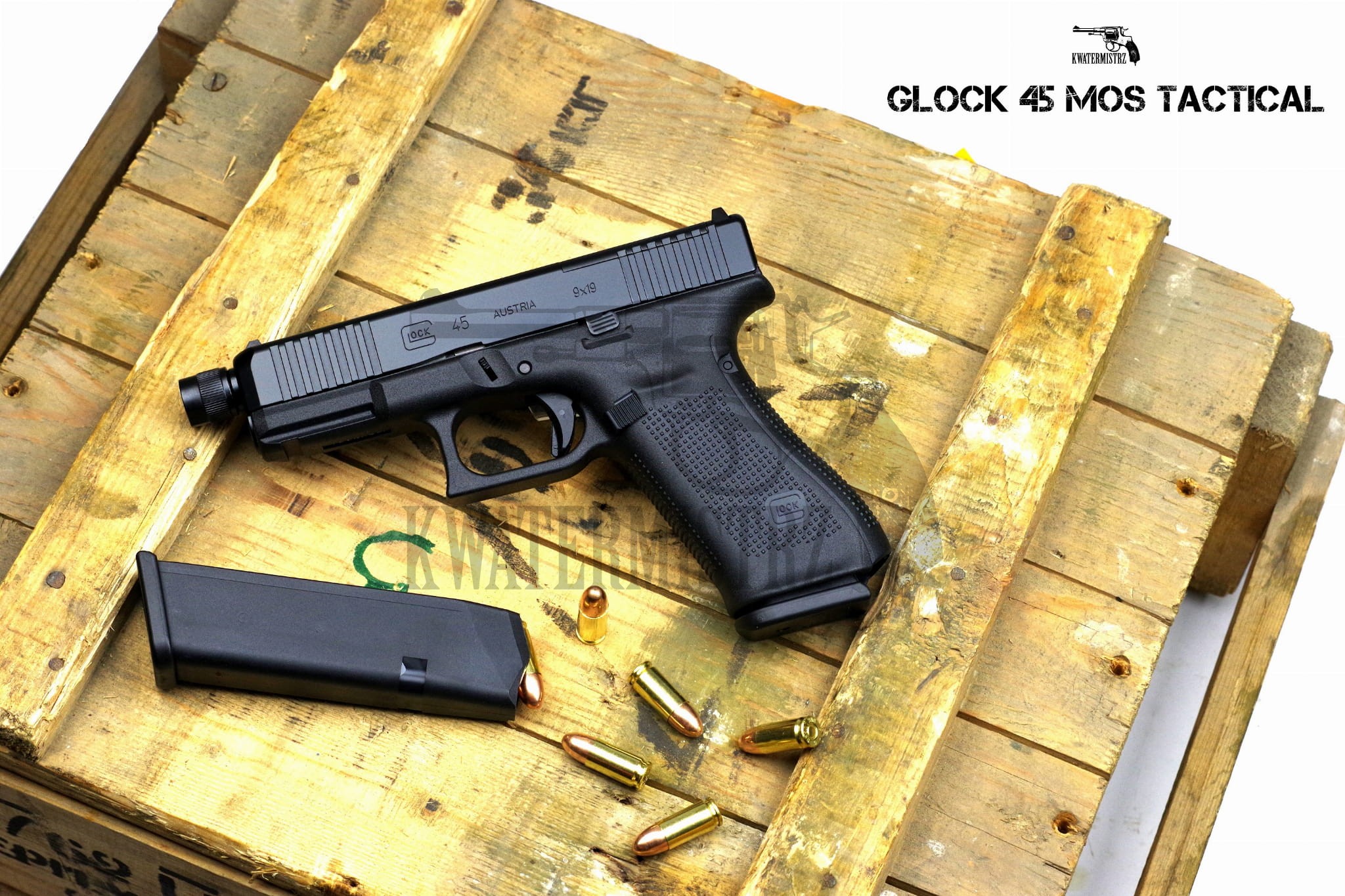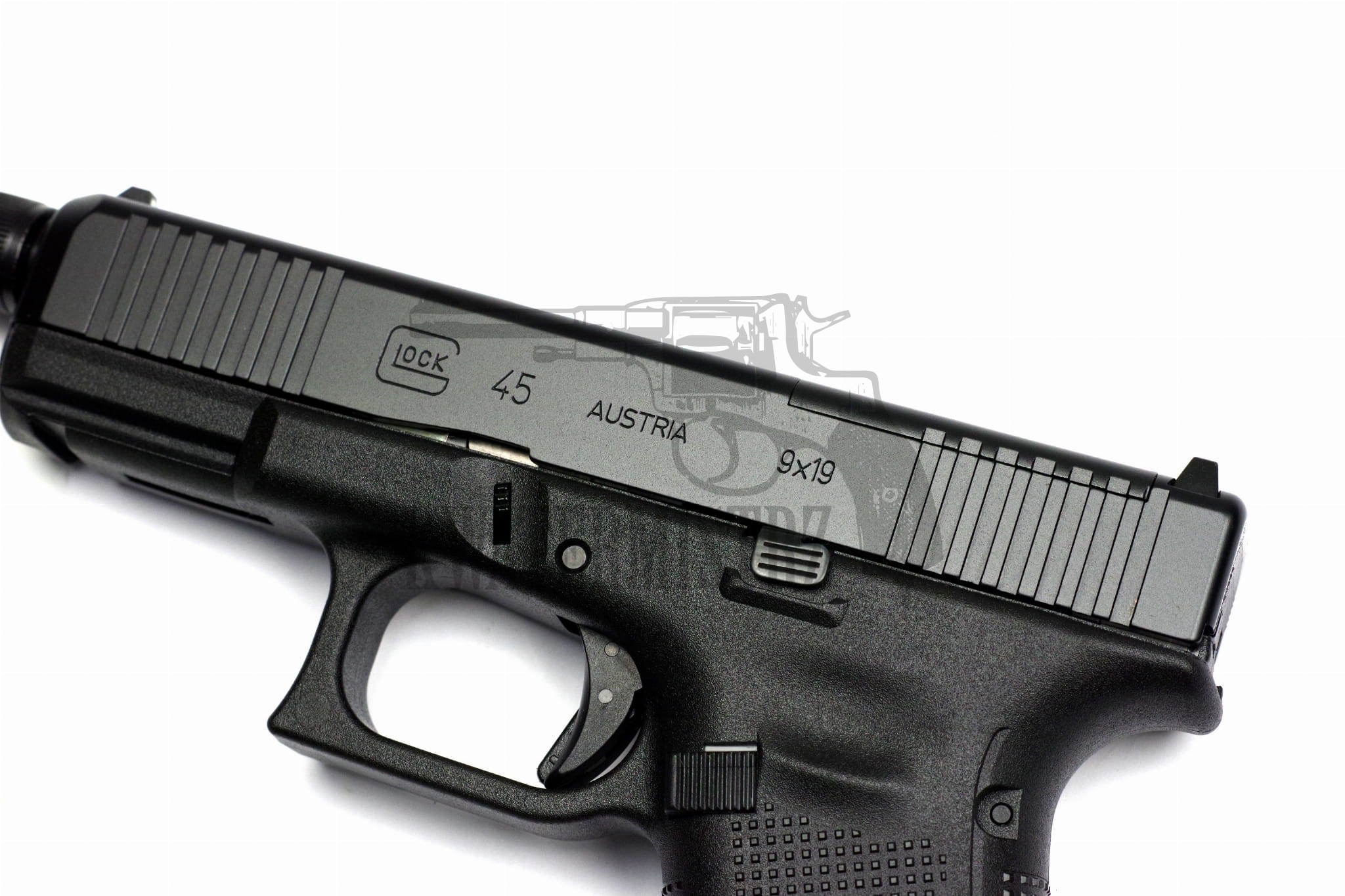 Pistolet Glock 45 MOS M13,5x1- bestseller od uznanego, austriackiego producent broni. Jest to nowoczesny pistolet bezkurkowy o polimerowym szkielecie z szyną akcesoryjną i potrójnym systemie zabezpieczeń (jeden spustowy i dwa wewnętrzne). Broń niezwykle wytrzymała i niezawodna.