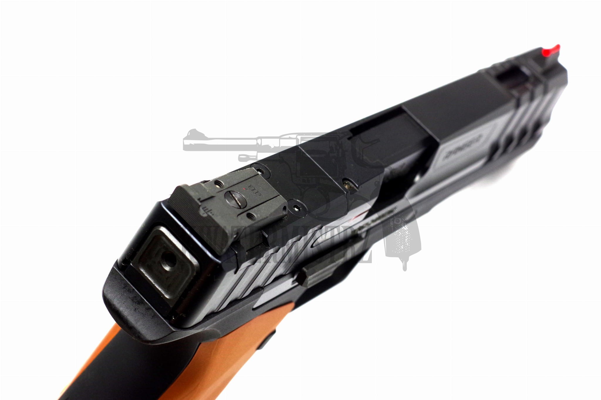 Pistolet HoG Ranger SPORT RA9 v.2- rynkowa nowość: nowoczesny, modułowy pistolet bezkurkowy o sportowym zacięciu od Ranger Arms powstały pod nadzorem polskiej, uznanej firmy House of Guns. Broń cechuje się przede wszystkim rewelacyjnym stosunkiem ceny do jakości. Szkielet wykonany został z wytrzymałego, lekkiego aluminium 7075 a zamek z mocnej stali 4140. Pistolet posiada regulowaną szczerbinę oraz światłowodową muszkę. W standardzie otrzymujemy dodatkowo możliwość montażu kolimatora. Pod lufą znajduje się szyna montażowa MIL-STD-1913, co pozwala na opcjonalny montaż dodatkowych akcesoriów. Co istotne magazynki wymienne są z magazynkami do popularnego pistoletu CZ-75.