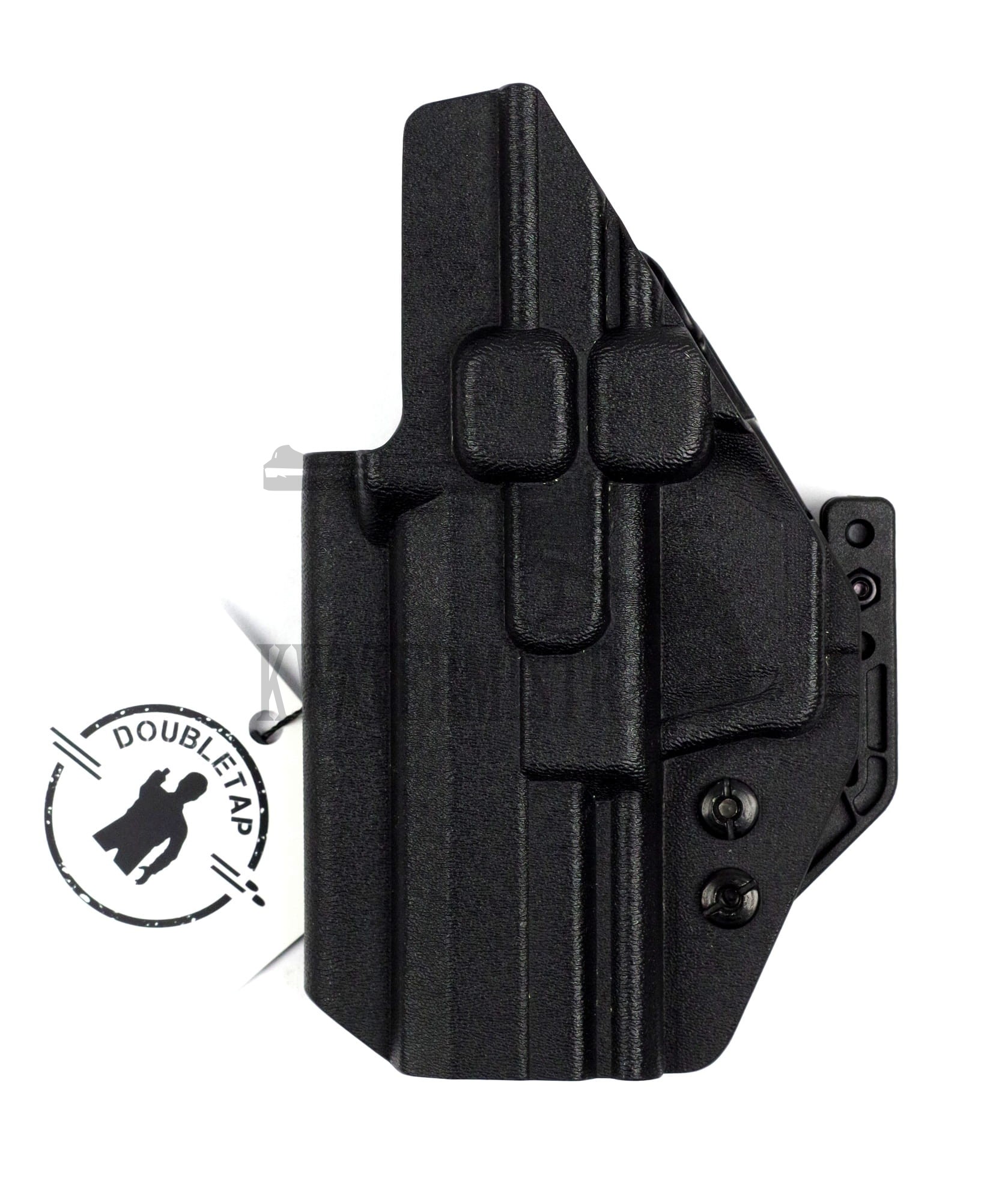 Kabury Doubletap tworzone są na frezowanej formie stałej, co zapewnia idealną powtarzalność produktu oraz wysoką precyzję wykonania. Te cechy pozwalają uzyskać perfekcyjną retencję (zacisk kabury wokół pistoletu). Kabury Doubletap tworzone są ze zrozumieniem ludzkiej anatomii- głębokość wycięcia pod palce dłoni strzelającej jest dobrana w taki sposób, aby móc złapać pistolet wygodnie i pewnie.